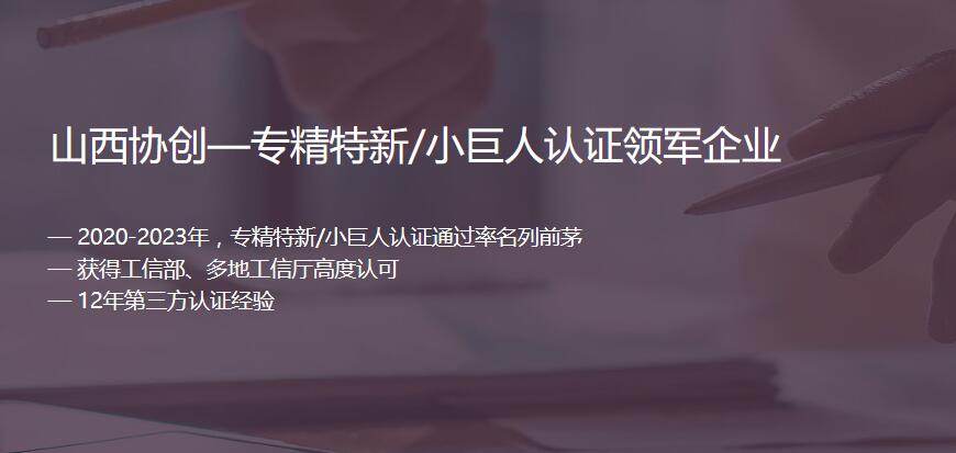 2025-03-04山西协创技术转移中心有限公司是专业从事高企申报,专精特新,技术中心、知识产权申报、ITSS、cmmi、两化融合、绿色工厂、体系认证、其他项目申报等等。电话:13...
